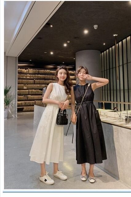 夏服 レディース ノースリーブ Aライン ワンピース ロングスカート プリーツスカート レディース スカート 夏服 韓国 ファッション