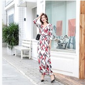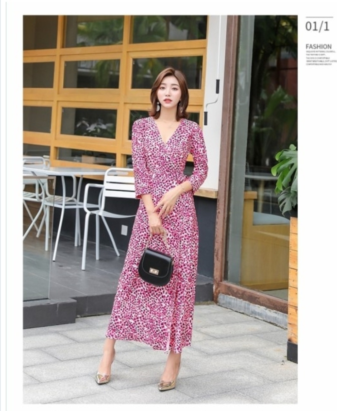 ワンピース 花柄 ワンピース マキシ Vネック カシュクール 花柄 グラデーション Aライン ブルー