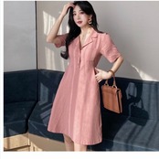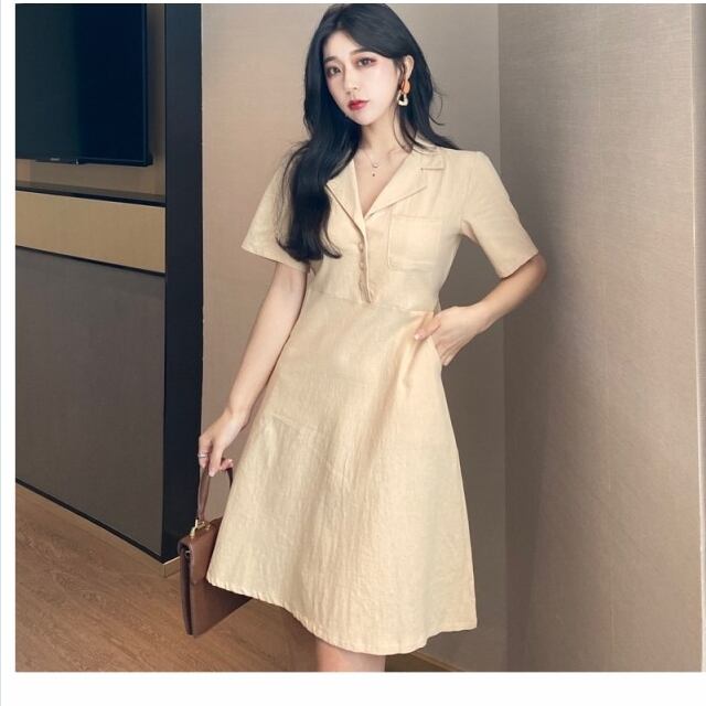 夏服 レディース 開襟 ワンピース シャツワンピ きれいめ 秋服 夏服 おしゃれ カジュアル 半袖 レジャー ワンピ Aライン サックス レディ