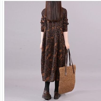 ワンピース 花柄 ワンピース 長袖 レディース 秋 膝丈 コットンリン 花柄 Aラインワンピース 体型カバー ゆったり おしゃれ ママワンピー
