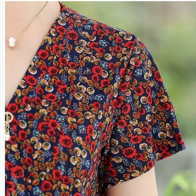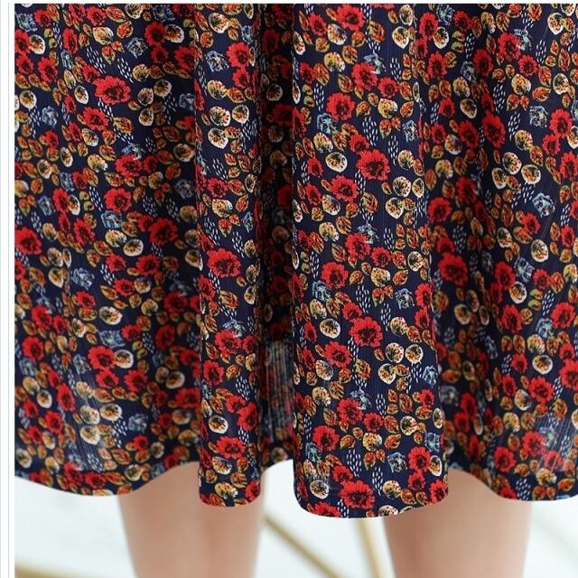 ワンピース 花柄 コットン&リネン 小花柄Aラインワンピース ロング丈 半袖 グリーン レディース