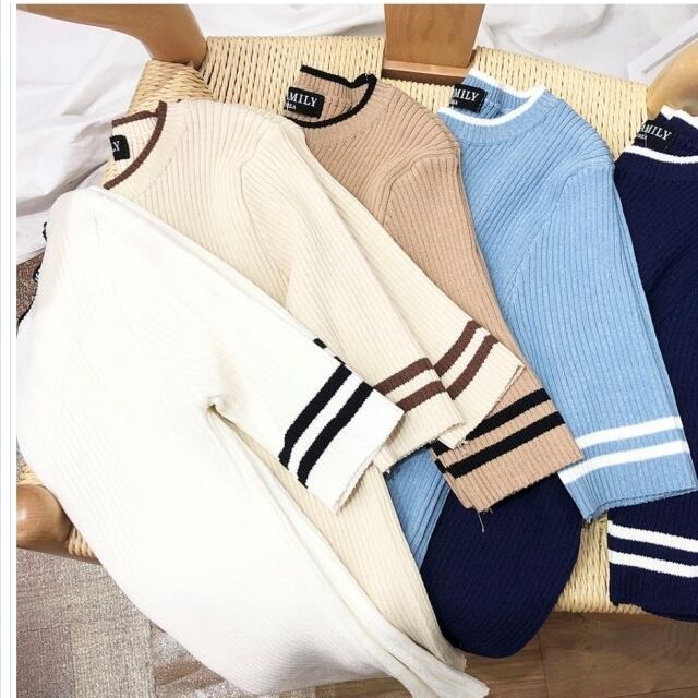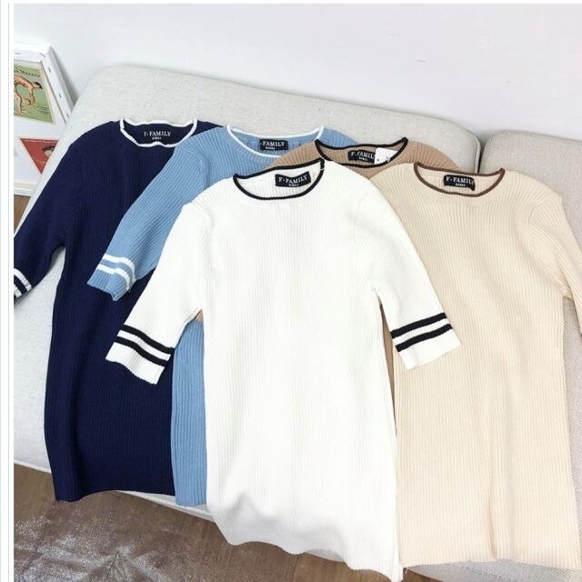 ゆるふわワンピース ワンピース レディース ニットワンピース ロングワンピース 半袖 ストライプ ラウンドネック 膝下丈