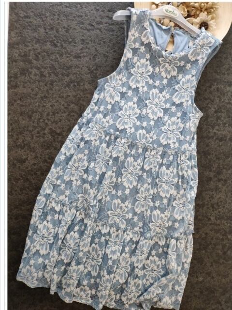 ワンピース 花柄 エムアンドキョウコ M ワンピース サイズF レディース ライトブルー×白 ニット 花柄