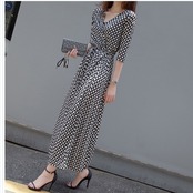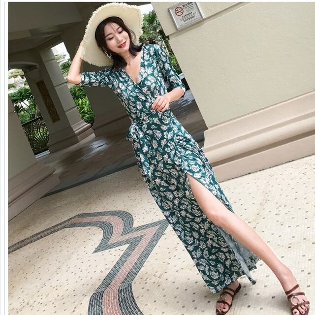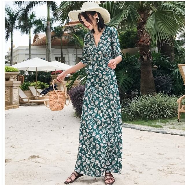 ワンピース 花柄 ワンピース 膝丈 Vネック カシュクール Aライン 青い花柄 S.M.L ピンク ジャネット