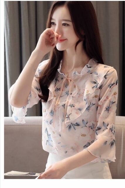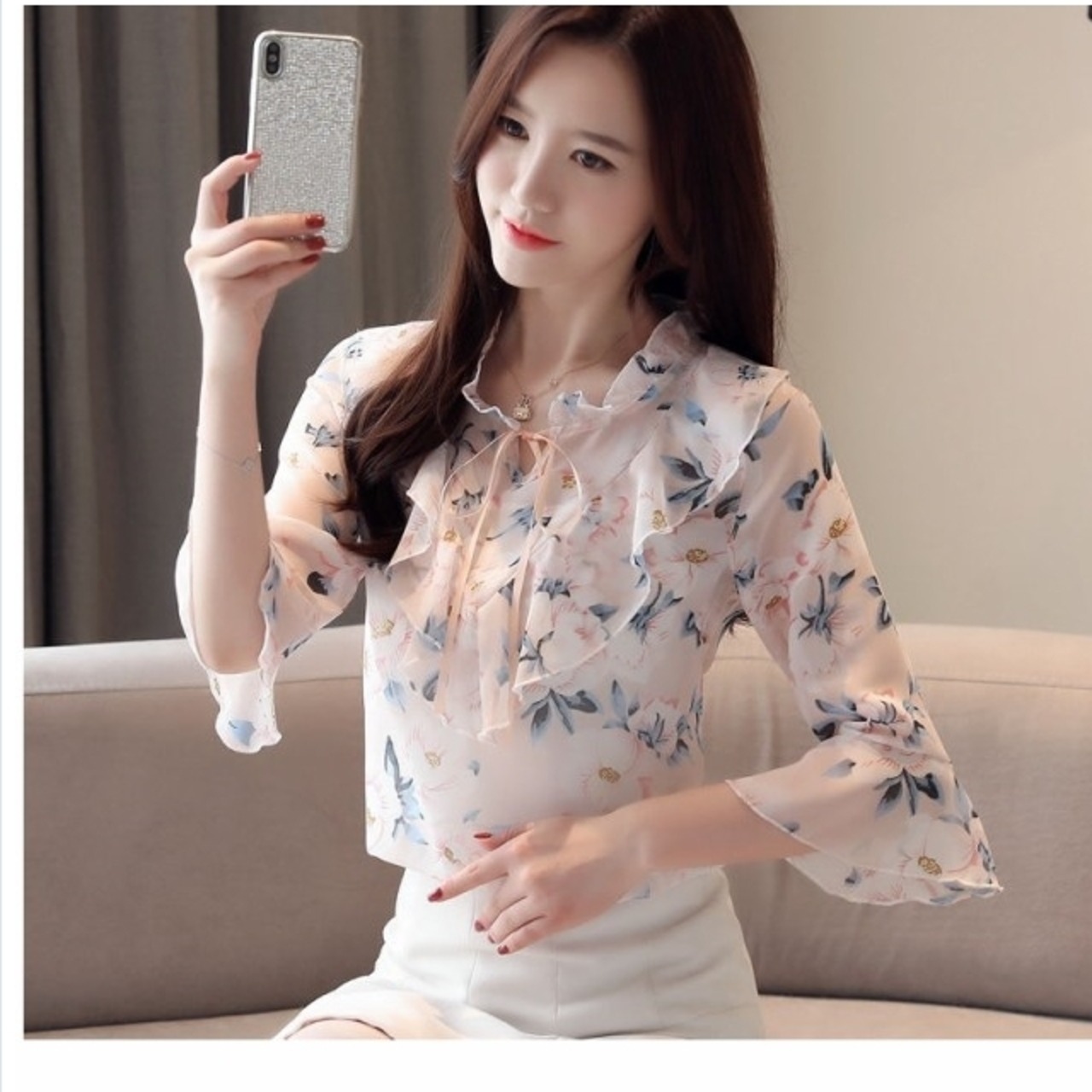 夏服 レディース ラッフル フリル 花柄 ブラウス 清楚 夏 春服 ピンク シャツ 可愛い 夏服 トップス 春 レディース 長袖 フレアスリーブ