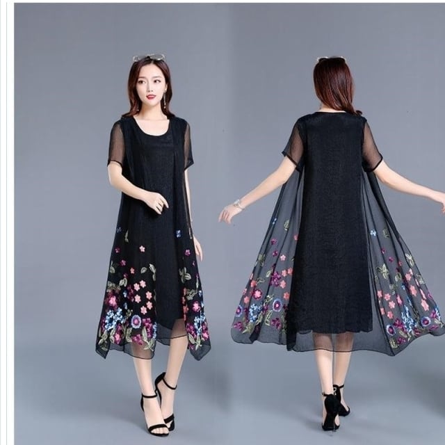 ワンピース 花柄 秋新着 サワアラモード 立体花モチーフの刺繍柄シャツワンピース ワンピース チュニック スカート シャツ Tシャツ 花柄