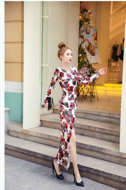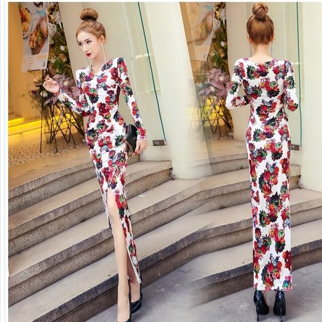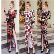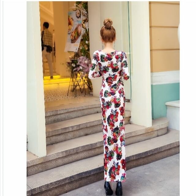 ワンピース 花柄 ワンピース ひざ丈 Vネック 花柄 胸元絞り S.M.L ブラック パープルレイン