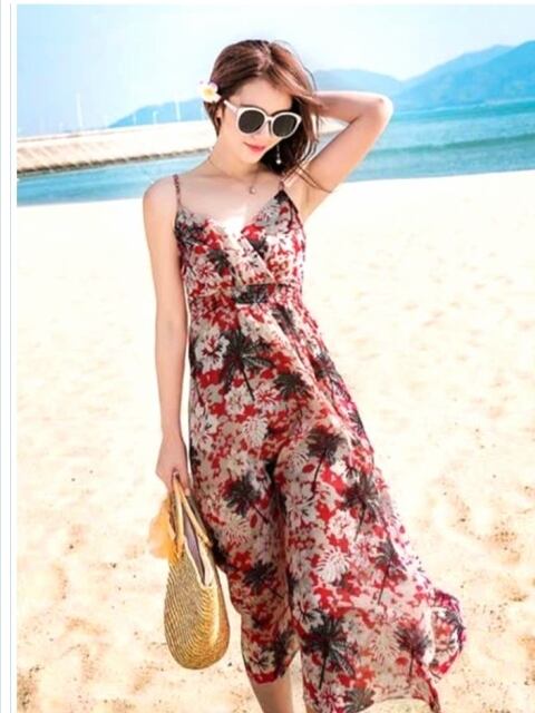 ワンピース 花柄 ワンピース レディース キャミソールワンピース シフォンワンピース マキシ丈 ラウンドネック ハイウエスト 花柄