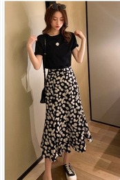 ワンピース 花柄 フラワープリントレイヤード風ワンピース レディース ワンピース チュニック ミモレ ロング きれいめ 花びら 大人