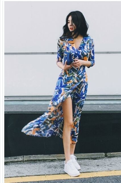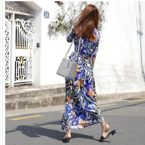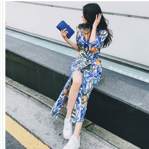 ワンピース 花柄 リゾートワンピース ワンピース リゾート 韓国 ファッション 夏 春 カジュアル マキシワンピース 深Vネック リボン ウ