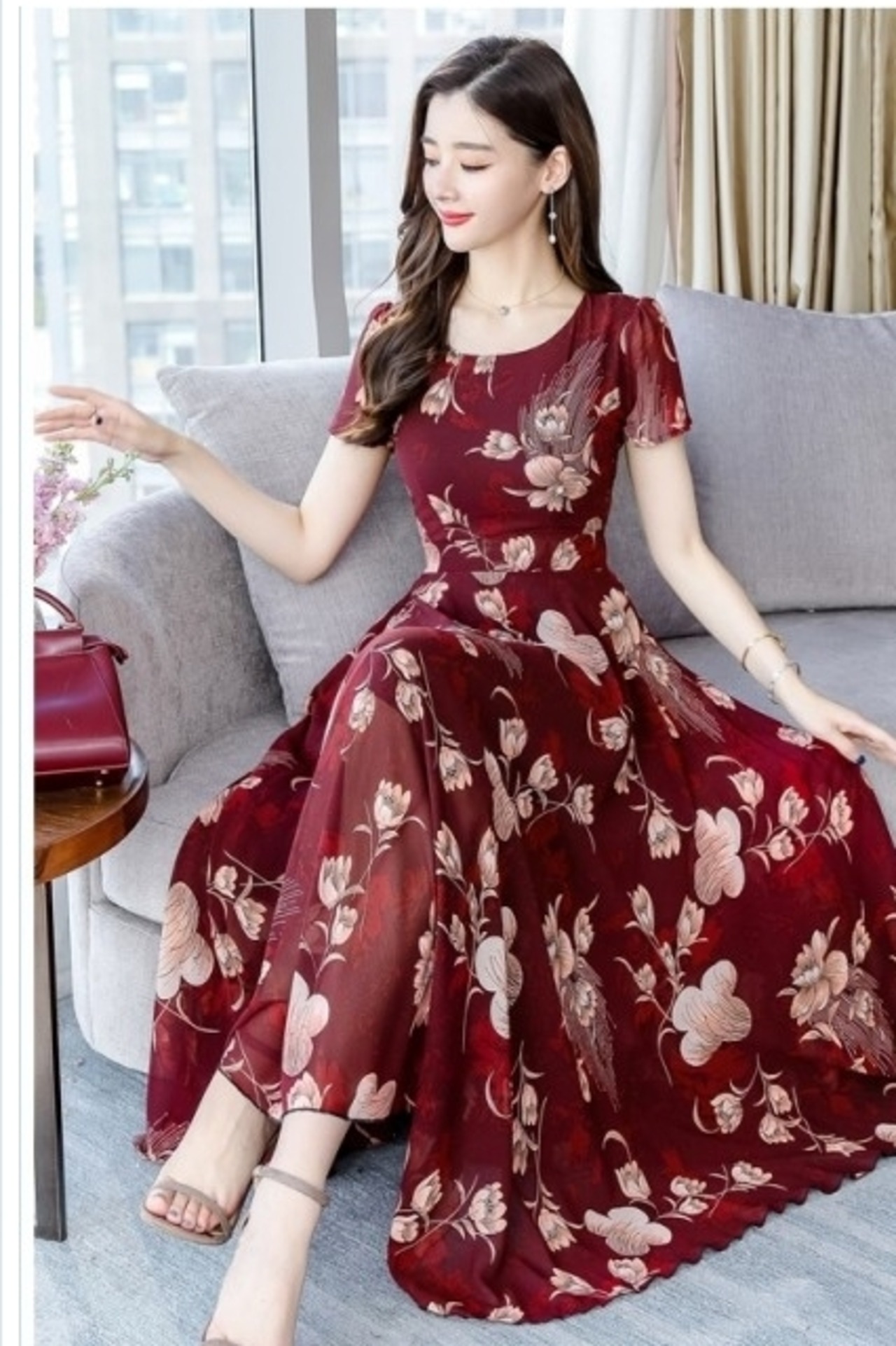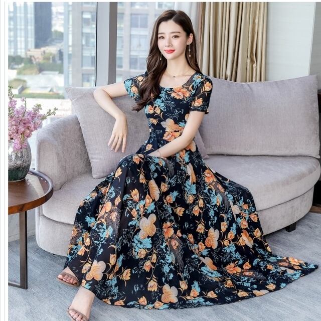 ワンピース 花柄 ワンピース レディース マキシ丈 花柄マキシワンピース マキシワンピース ロング丈 シフォン ワンピース 女の子 着痩せ