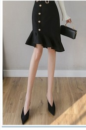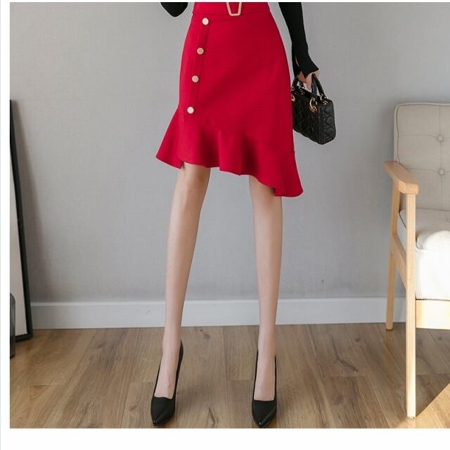 夏服 レディース レトロ調 フィッシュテール ワンピース フリル 長袖 ミモレ丈 バイカラー 夏服 秋服 韓国 ファッション