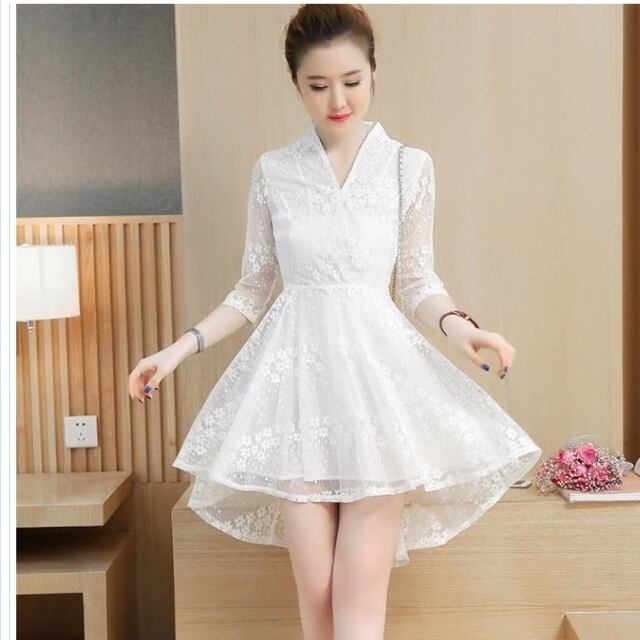 ワンピース 花柄 フィッシュテール ワンピース ドレス シフォン 白 花柄 春物 夏物 最新 レディース 人気 可愛い 大人