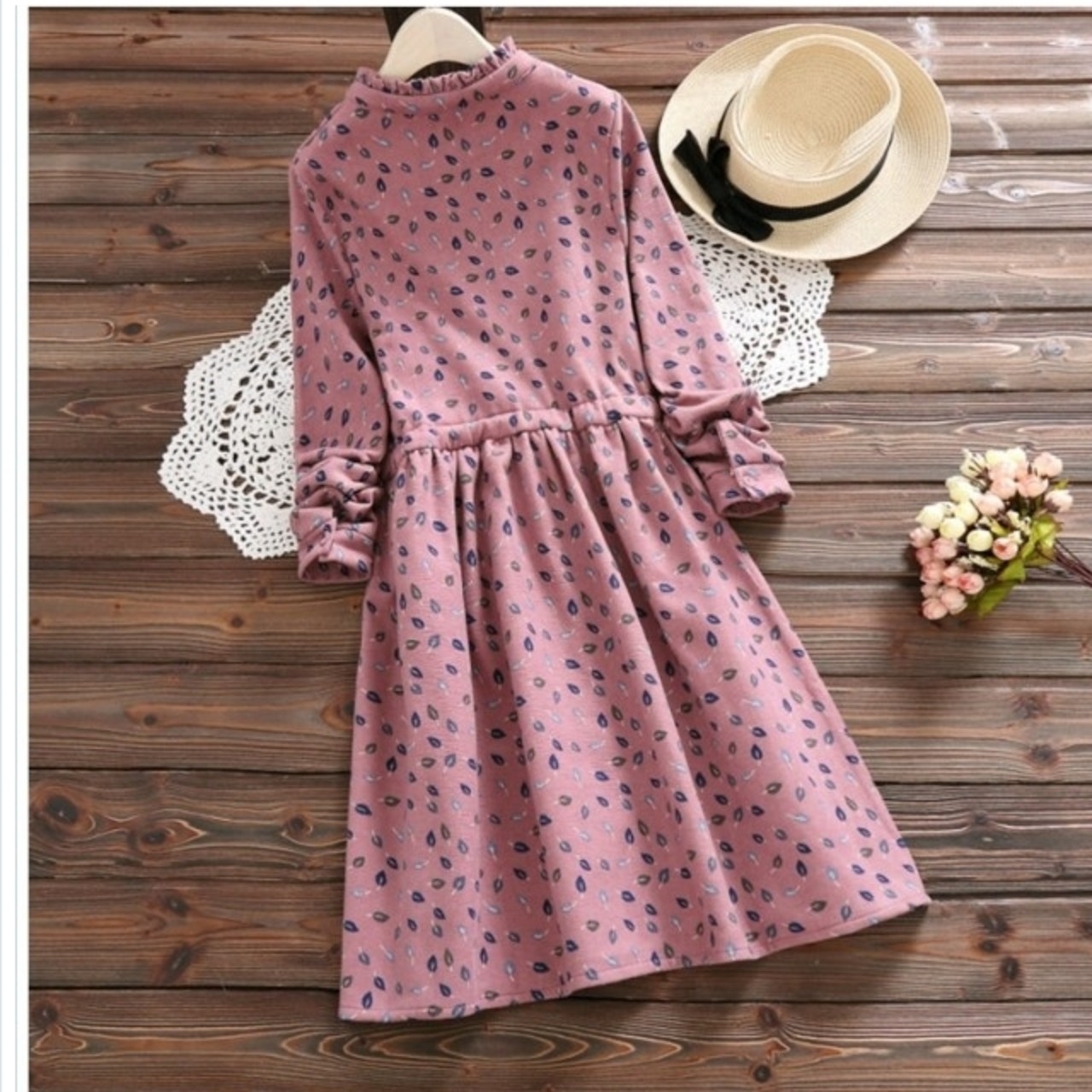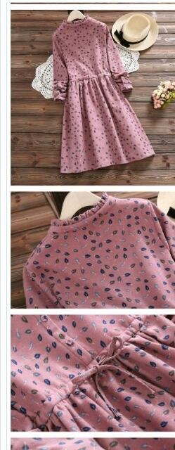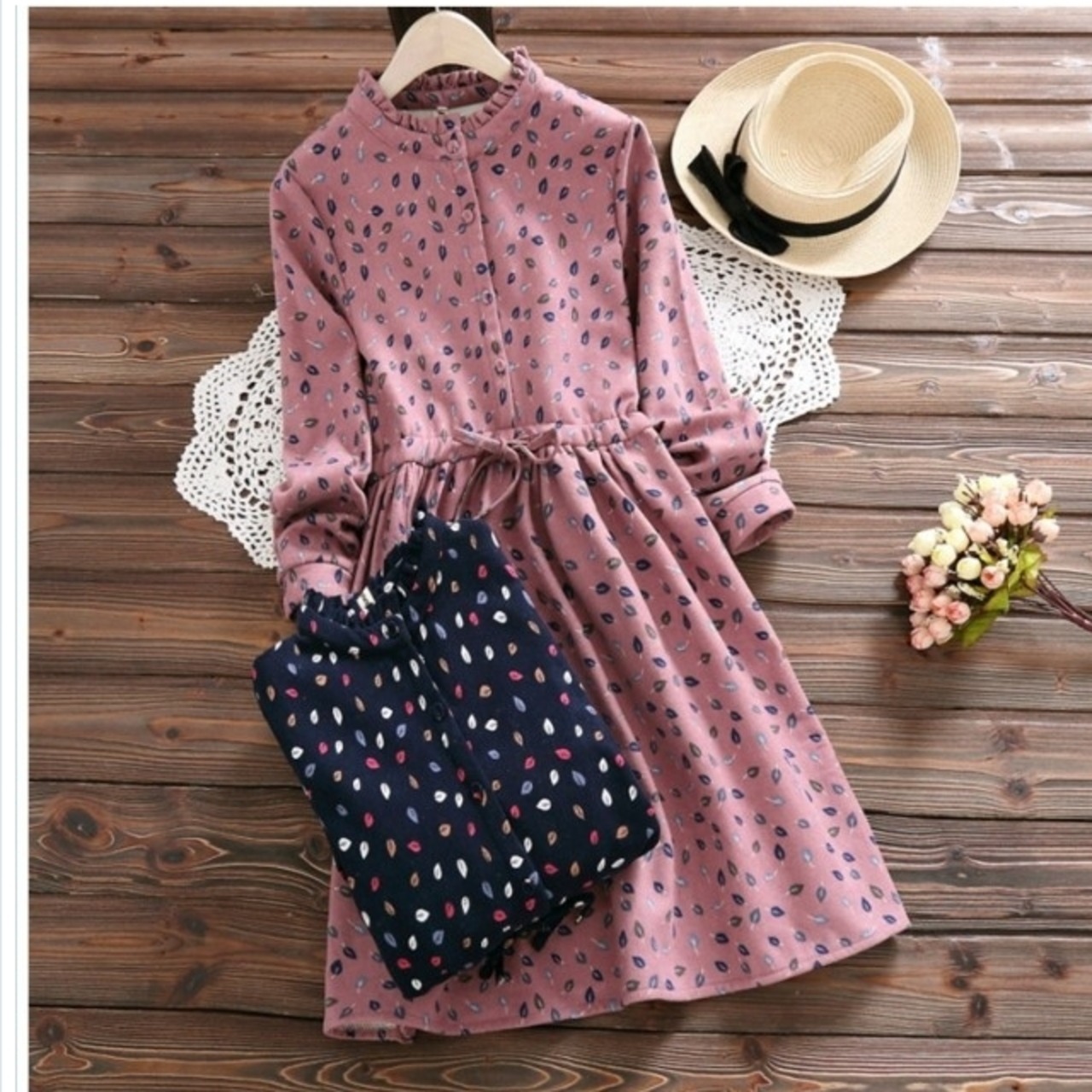 ワンピース 小花柄 マタニティ ワンピース マタニティウェア ママ ベビー 花柄 フリル 立ち襟 授乳 前開きボタン ウエスト紐 ウエスト調