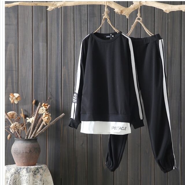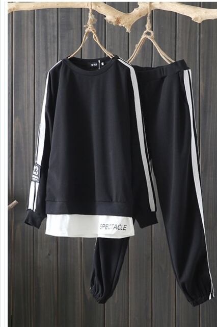 大きいサイズ レディース 春服 上下レディースセットアップ大きいサイズ 綿 ラウンドネック 長袖 黒 カジュアル スエットトレーナー ゆっ