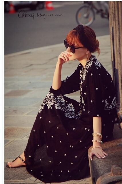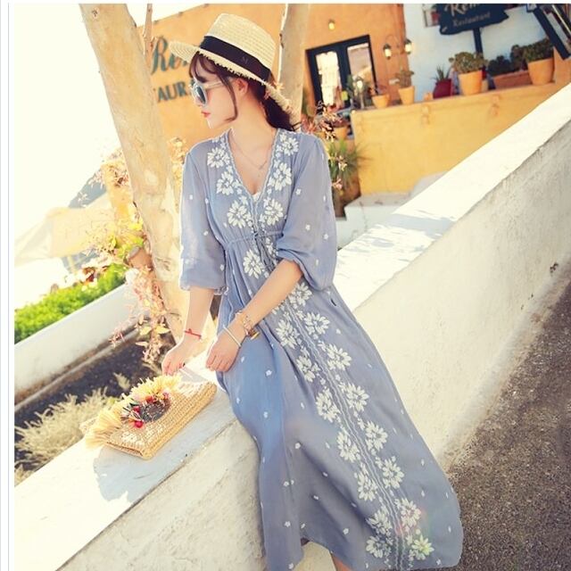 ワンピース 花柄 和風ボヘミアン刺繍 花柄 マキシワンピース