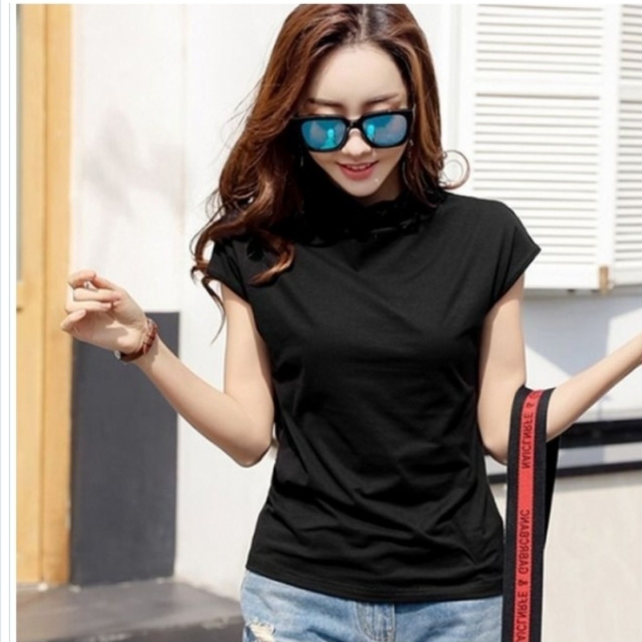 大きいサイズ コーディガン レディース Tシャツ トップス 半袖 ハーフタートルネック 選べる5色 ソリッドカラー 大きいサイズ ゆったり