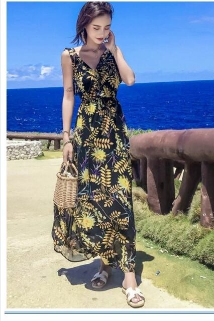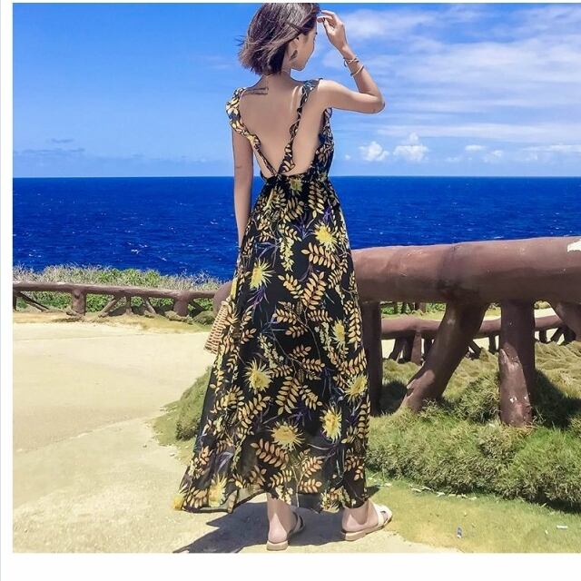 夏服 レディース 花柄 背中開き 背中見せ マキシ丈キャミワンピース ロングワンピース フレアワンピース リゾートドレス リゾートワンピ