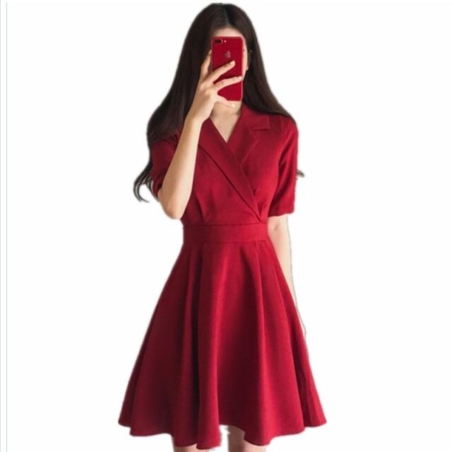 バックリボン ワンピース お呼ばれ ワンピース ひざ丈 aライン ハイウエスト 黒 春物 夏物 最新 レディース 人気 可愛い 大人