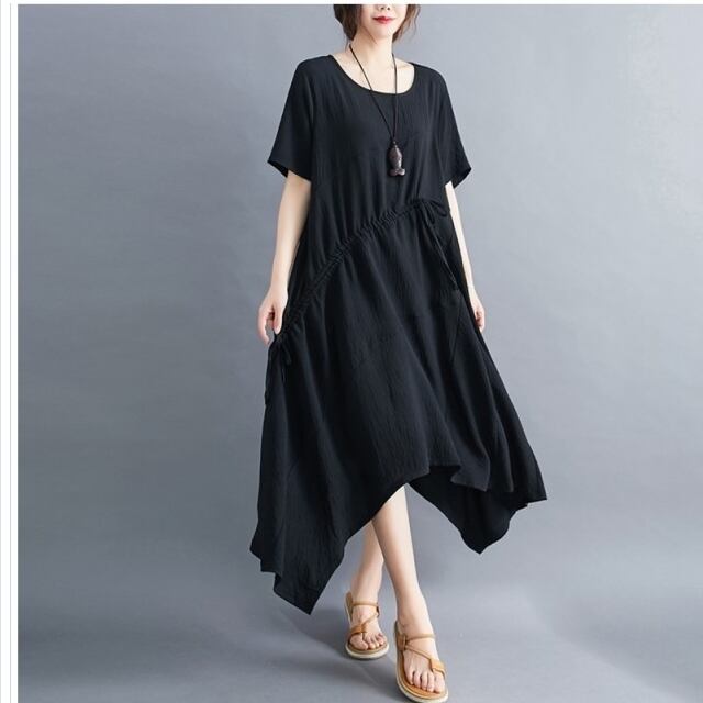 バックリボン ワンピース 大きいサイズ レディース ワンピース ブラウジングワンピース 共布リボンベルト ロング丈 スリット ウエストシ