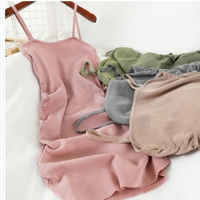 バックリボン ワンピース カットプリーツキャミソールワンピース レディース ワンピース ロングワンピ 春夏 茶 緑 F