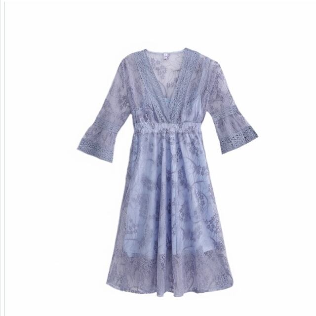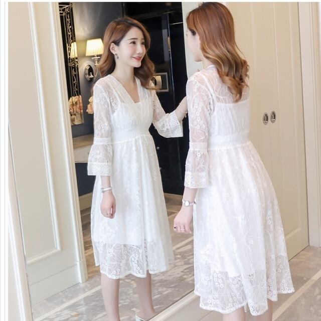 バックリボン ワンピース 刺繍レースワンピース