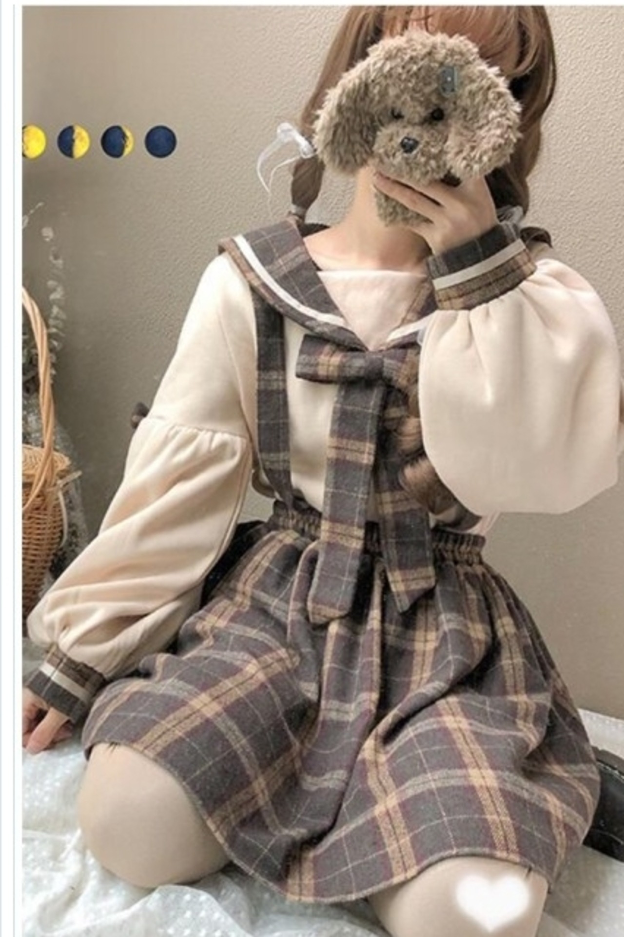 レディース 大きいサイズ 服 2点 セット セーラー ブラウス チェック 柄 サロペット 大きいサイズ レディース 秋 冬 服 膝 丈 長袖 学生