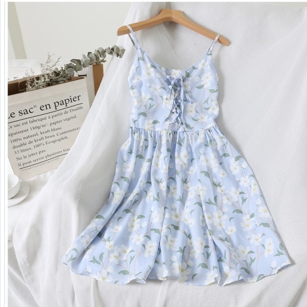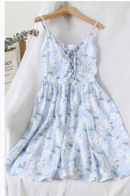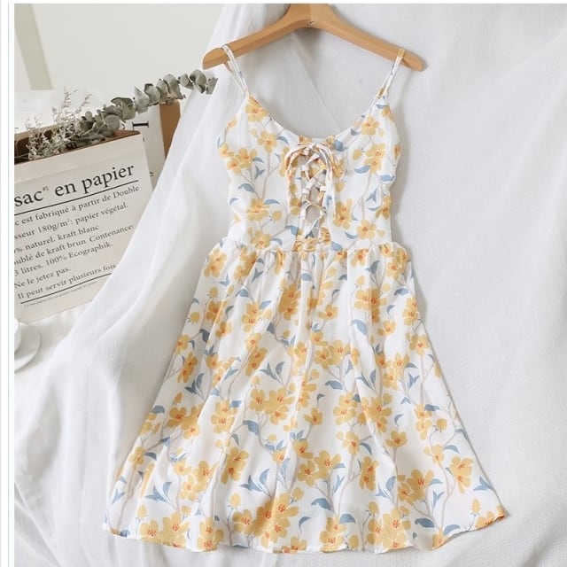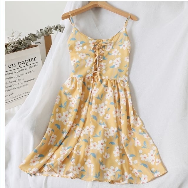 ワンピース 花柄 キャミワンピース チュニック ノースリーブ ひざ下丈 花柄シフォン ミント イエロー M レディース
