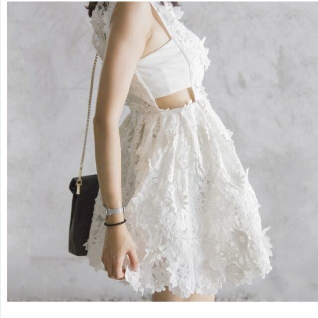 夏服 レディース ミニ丈 総レースワンピース ミニワンピース ノースリーブワンピース フレアワンピース リゾートワンピース リゾートドレ