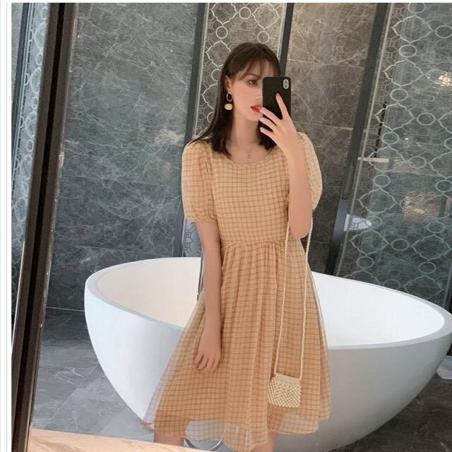 バックリボン ワンピース ピンクハウス ワンピース レディース 美品 白×ブラウン チェック柄 リボン