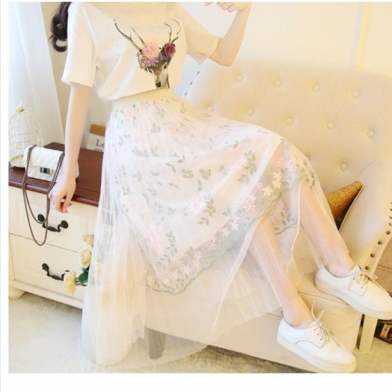 夏服 レディース セットアップ 花柄 マキシ丈 ドッキングワンピース カットソーワンピース ロングTシャツ プリーツスカート ロングスカー