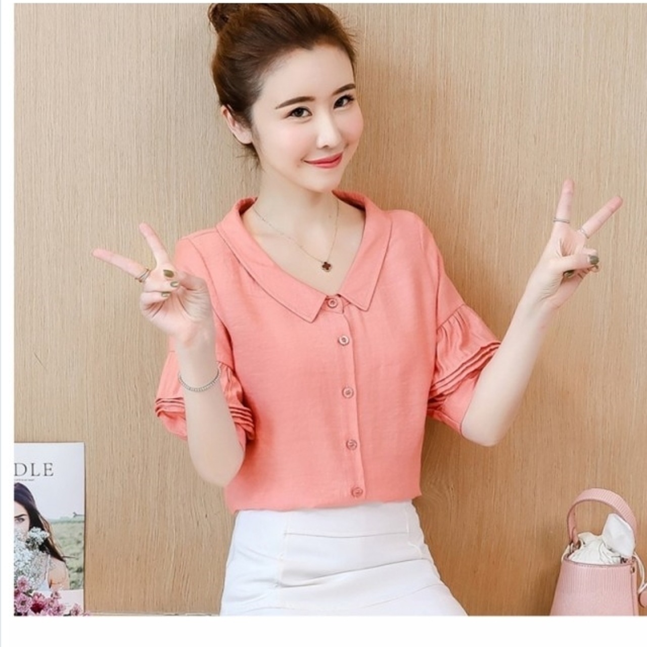 夏服 レディース シンプル ブラウス 白シャツ パフスリーブ バルーンスリーブ ボリューム袖 トップス レディース 韓国 オルチャン ファッ