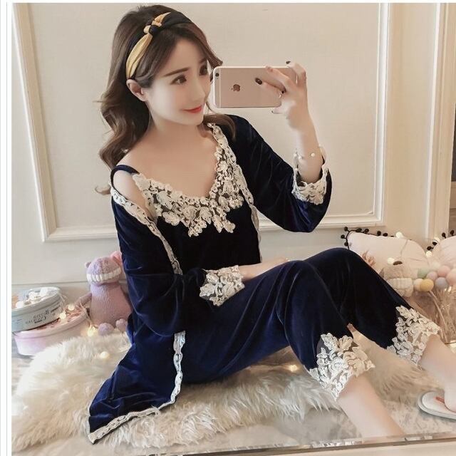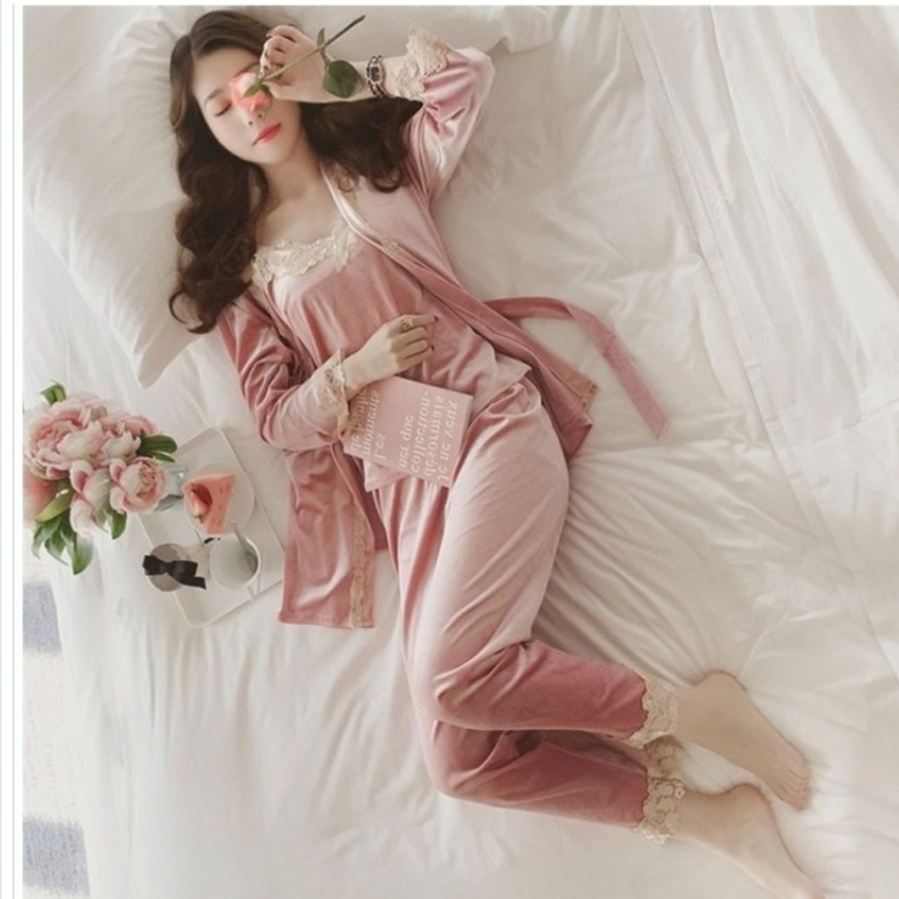 ルームウェア レディース 大きいサイズ ネグリジェ ルームウエア モコモコ 冬 可愛い かわいい 部屋着 3点セット 大きいサイズ ガウン 寝