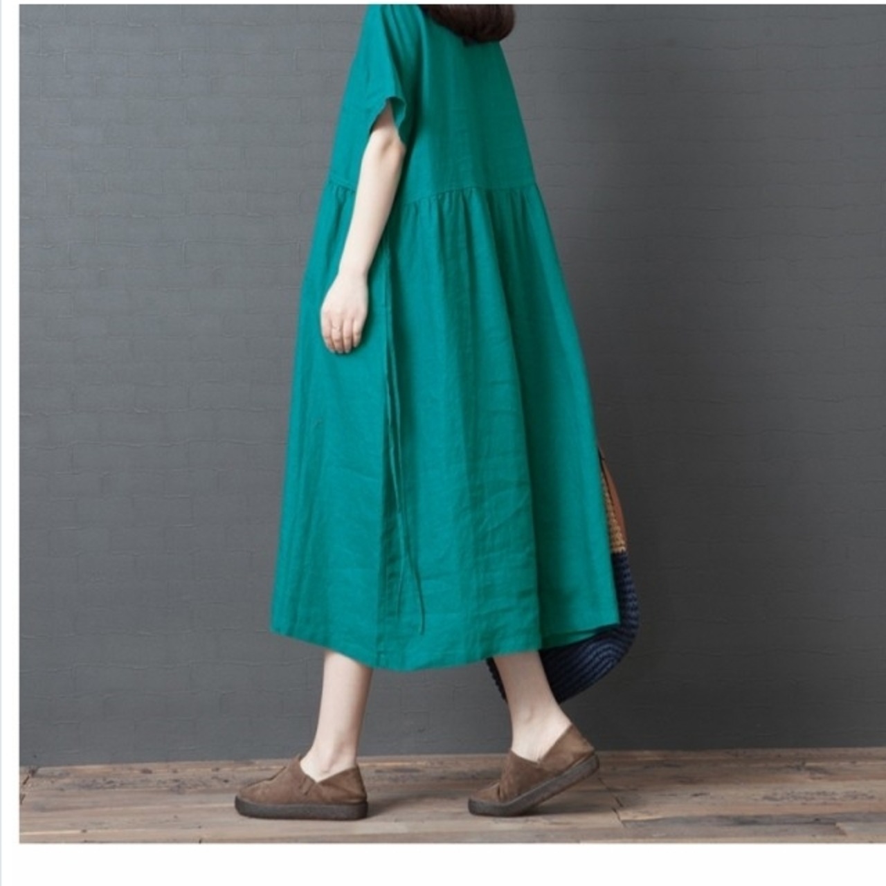 夏服 レディース ミモレ丈ワンピース ロングワンピース ロング丈フレアワンピース Aラインワンピース 半袖 レディース 韓国 オルチャン