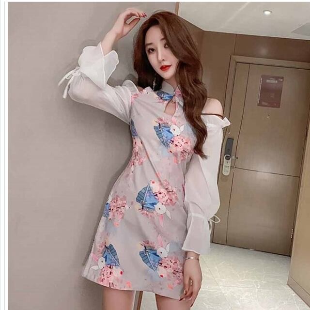 フェミニン ワンピース ワンピース チャイナワンピース タイトワンピース オフショルワンピース ミニ丈ワンピース ミニ丈 チャイナ風 長