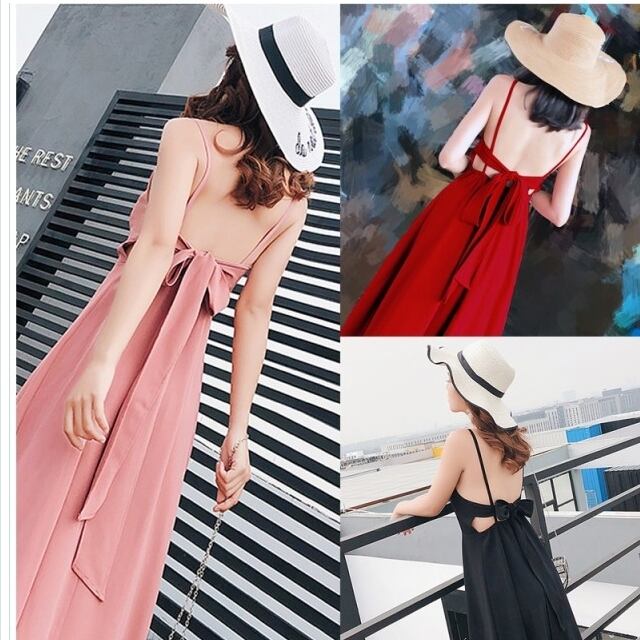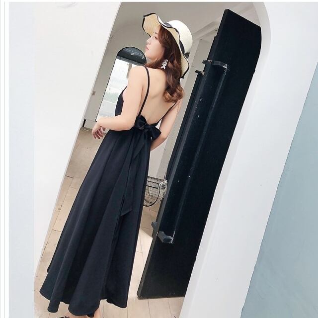 バックリボン ワンピース ワンピース ロングワンピース フレアワンピース フレア バックコンシャス リボン フェミニン 結婚式 二次会 パ