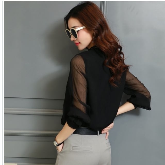 シースルー トップス 長袖 秋新作 エレガント シースルーブラウス トップス シャツ ブラウス シフォン 長袖 丸襟 刺繍 秋 大きいサイズ