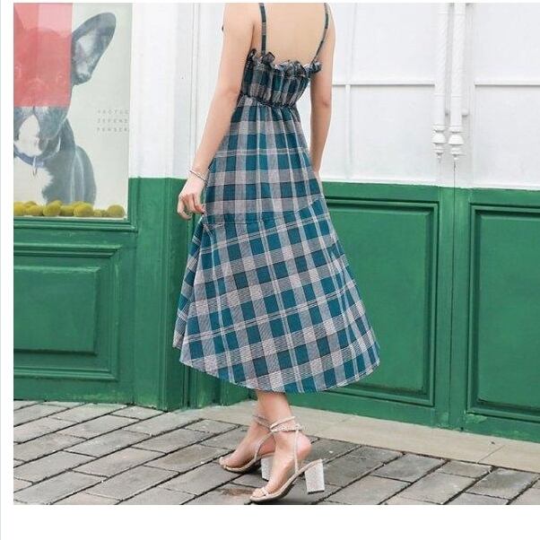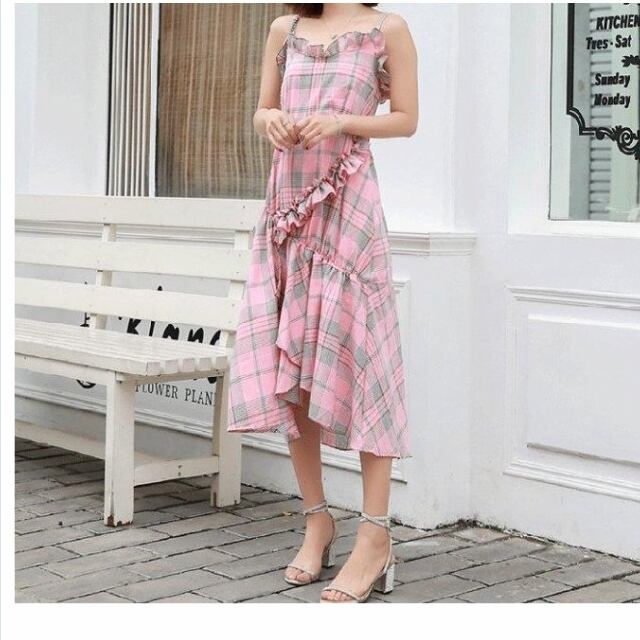 夏服 レディース チェック柄 ミモレ丈 キャミワンピース フィッシュテールワンピース フリルワンピース フレアワンピース 膝下ワンピース