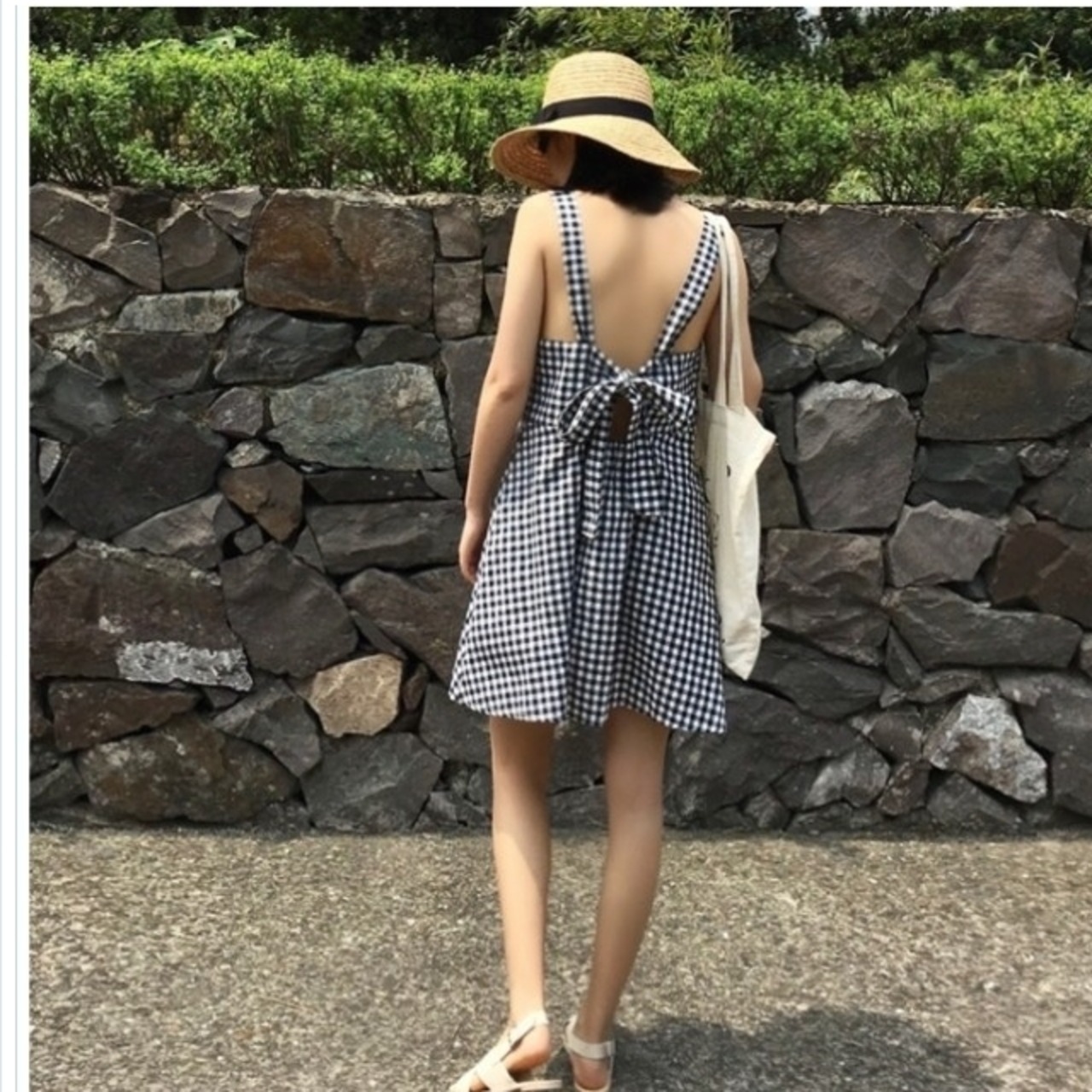 バックリボン ワンピース ワンピース ギンガムチェック バックリボン