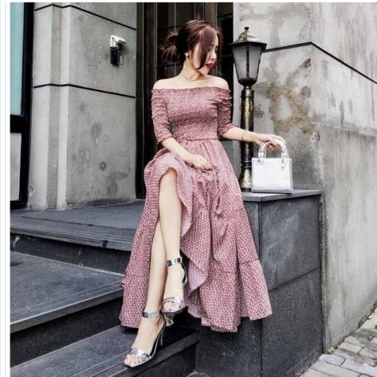 ワンピース 小花柄 小花柄 オフショルダー マキシワンピース ティアードスカート Aライン レディース