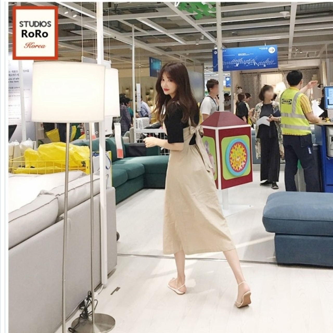 バックリボン ワンピース パンツ レディース バックコンシャス リボン ロング フレア