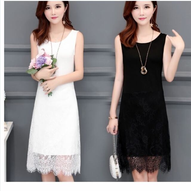 夏服 レディース ワンピース ワンピ レディース エレガント 総レース ラウンドネック ノースリーブ ミモレ丈 Aラインワンピース 大きいサ
