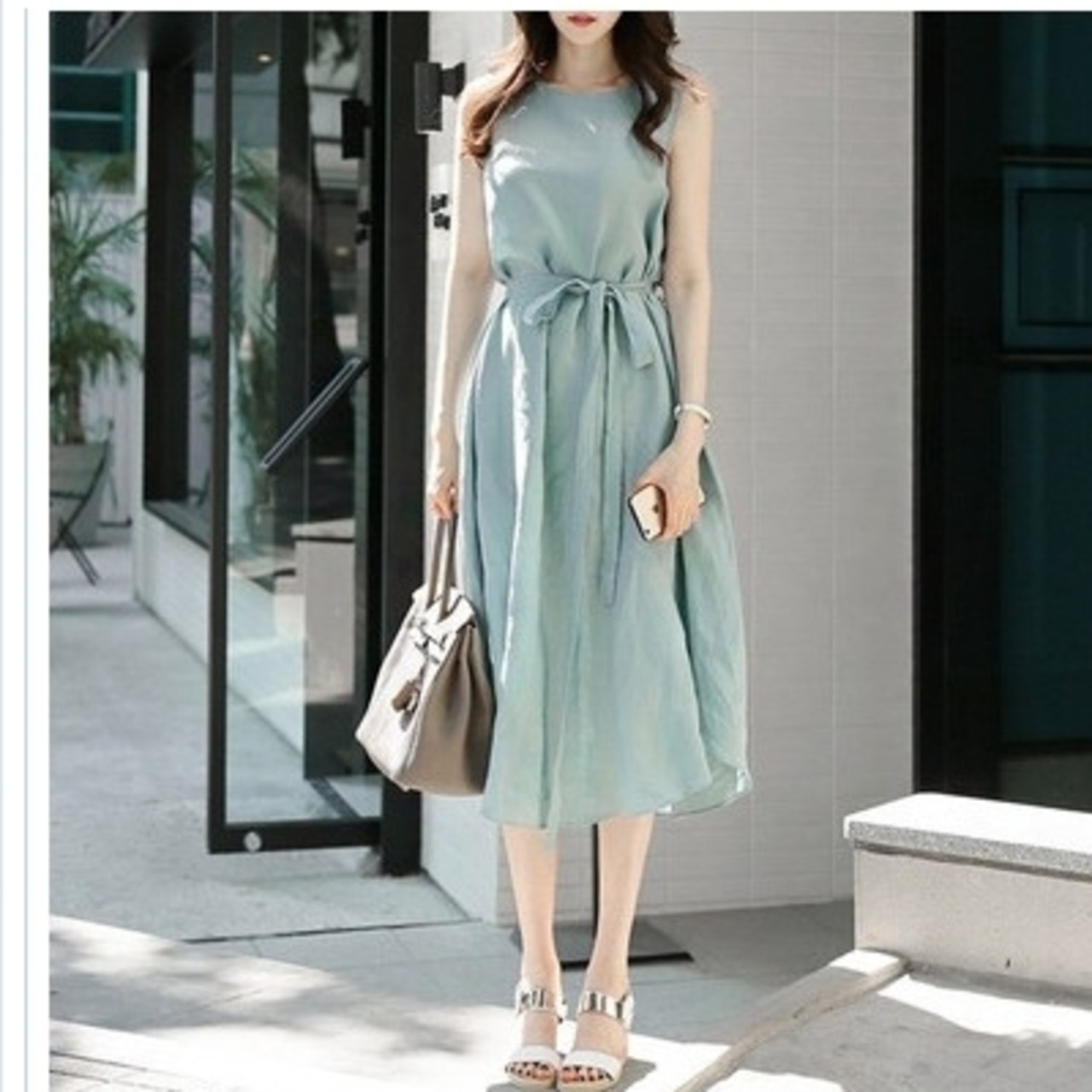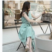 バックリボン ワンピース ロングワンピース ノースリーブ ロング丈 リネン 綿麻 ミモレ丈 ワンピース ウエストリボン Aライン バックコン