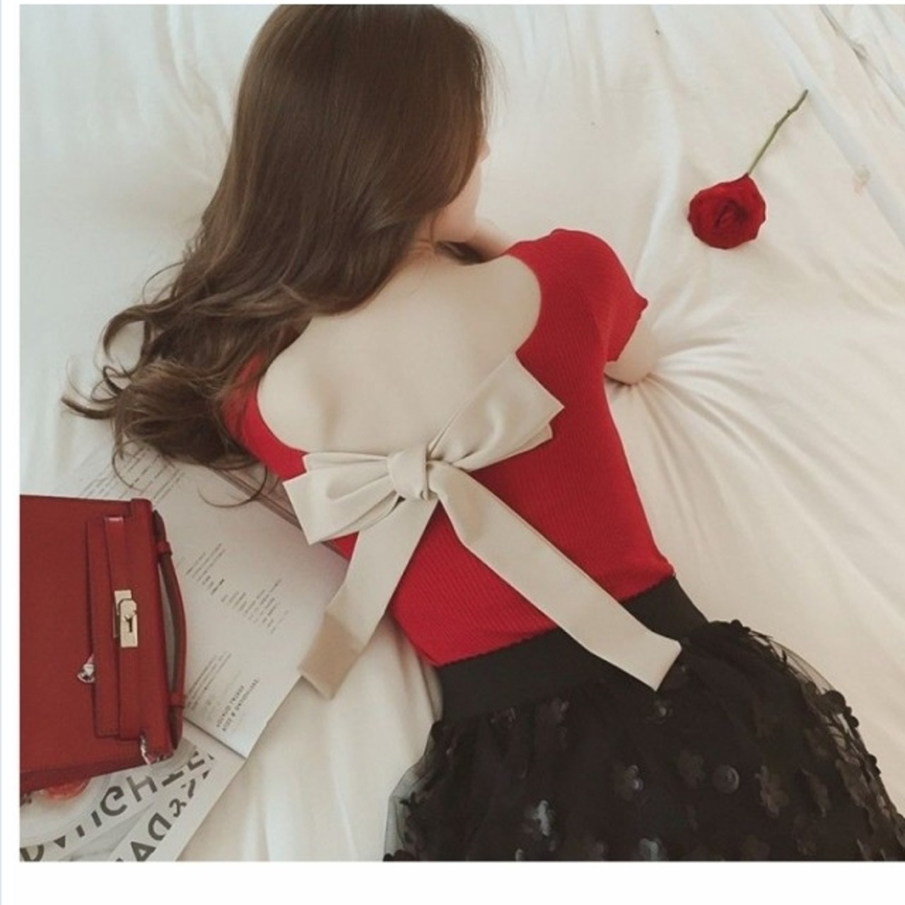 夏服 レディース バックリボン サマーニット サマーセーター ニットトップス ニットソー プルオーバー 半袖 レディース 韓国 オルチャン