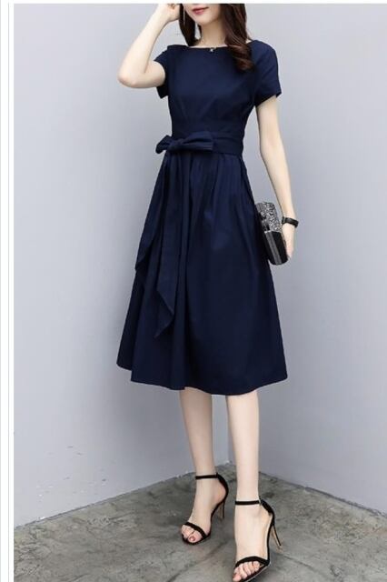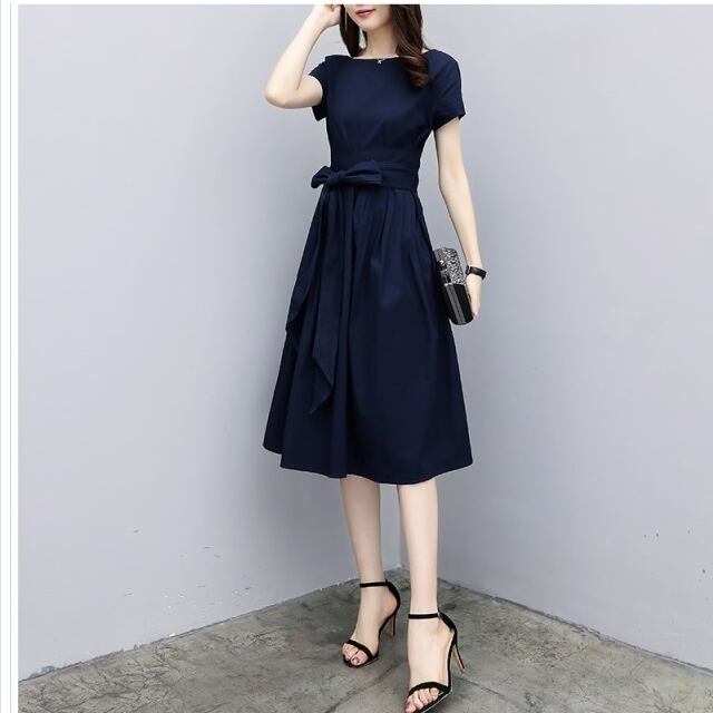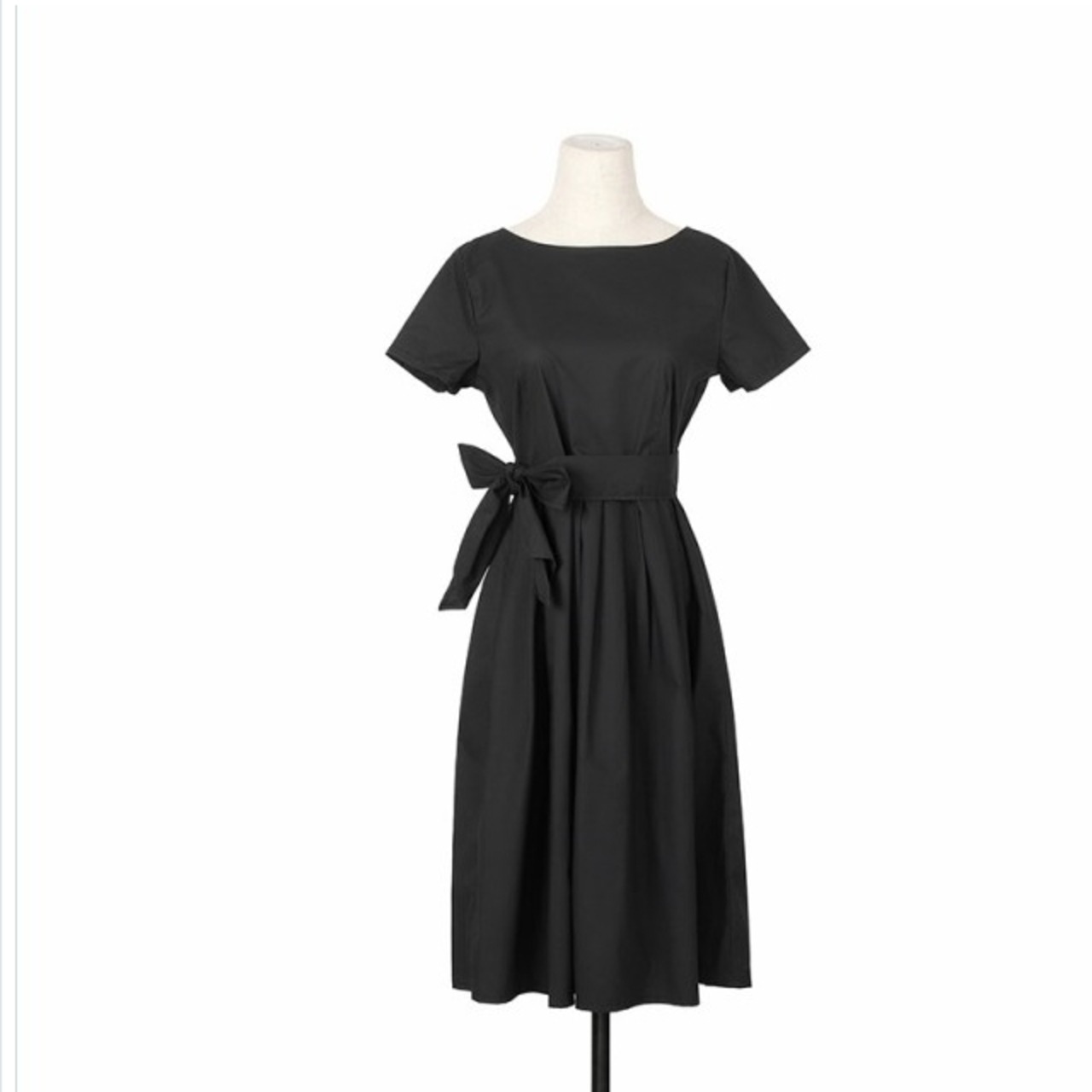 バックリボン ワンピース ロージーモンスター ワンピース ロング ミモレ ボートネック ウエストリボン F 黒 レディース