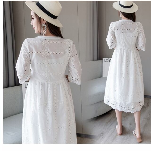 夏服 レディース ひざ上丈 カットワークレースワンピース ミニワンピース フレアワンピース Aラインワンピース パフスリーブ 袖フリル 半