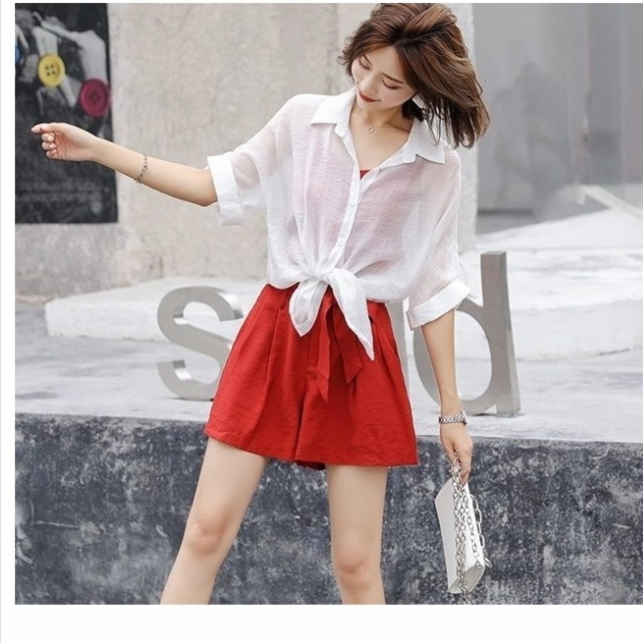 夏服 レディース セットアップ オーバーサイズブラウス ロングシャツ キャミソール インナー ショートパンツ レディース 韓国 オルチャン
