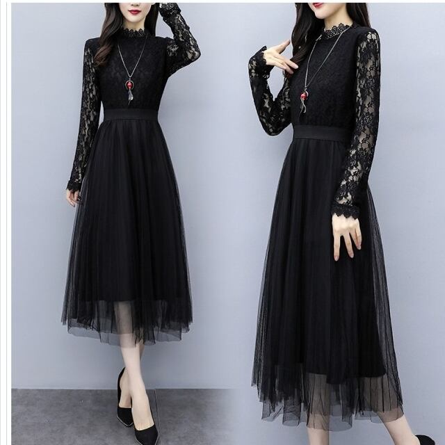 バックリボン ワンピース 秋新作 ワンピース フレアワンピース 長袖 レース オーガンジー 透け感 女性らしい リボン 背中開き 肌見せ パ