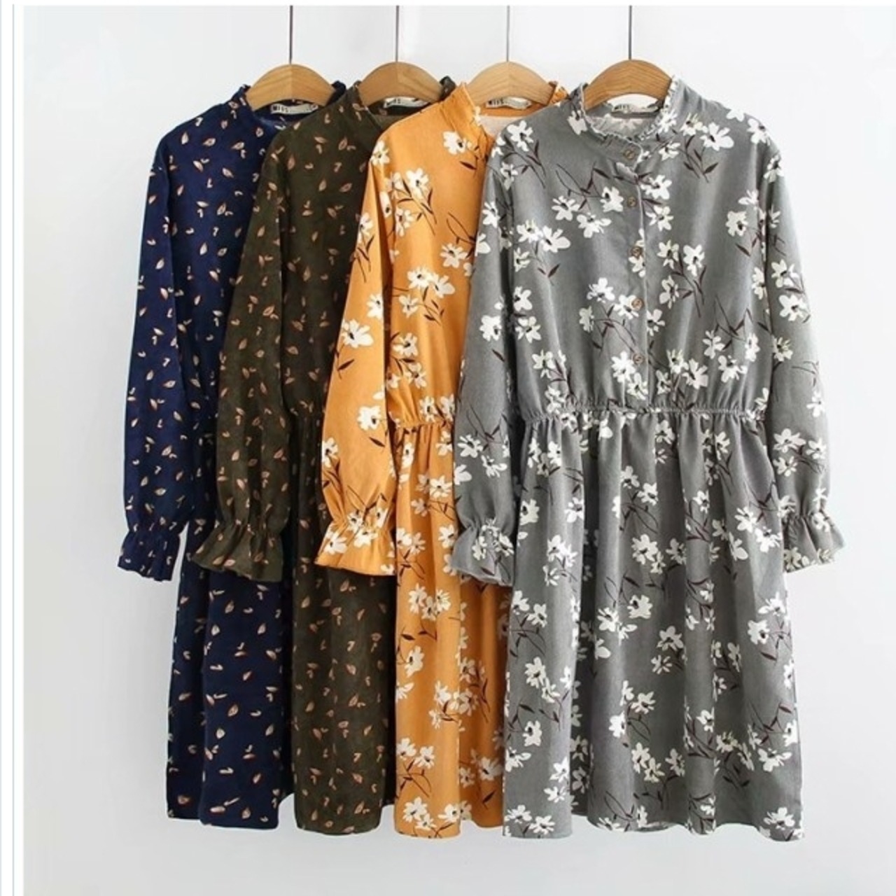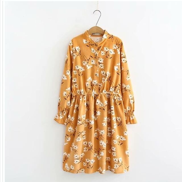 ワンピース 花柄 ひざ丈 春秋冬 ワンピース ドレス カジュアル 花柄 小花柄 ウエストギャザー