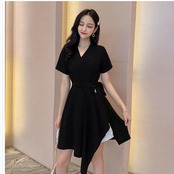 バックリボン ワンピース バックリボンが可愛いチェック柄膝丈ワンピース ノースリーブ 韓国ファッション